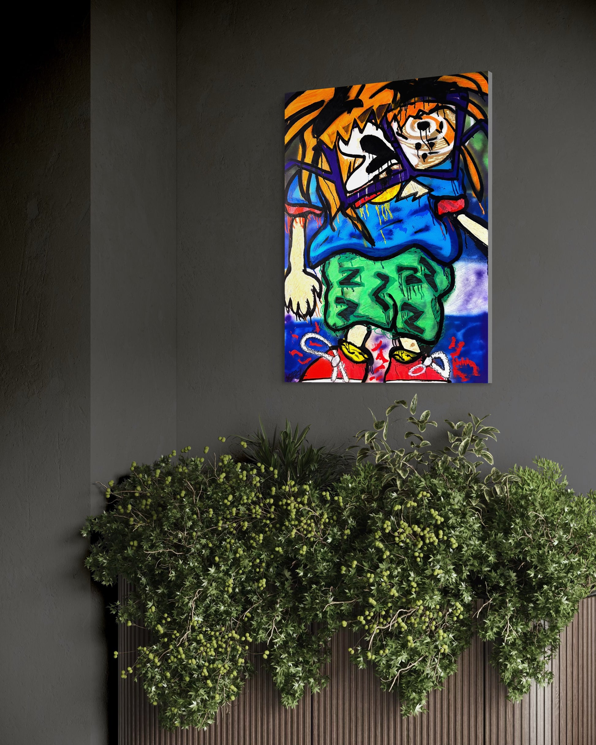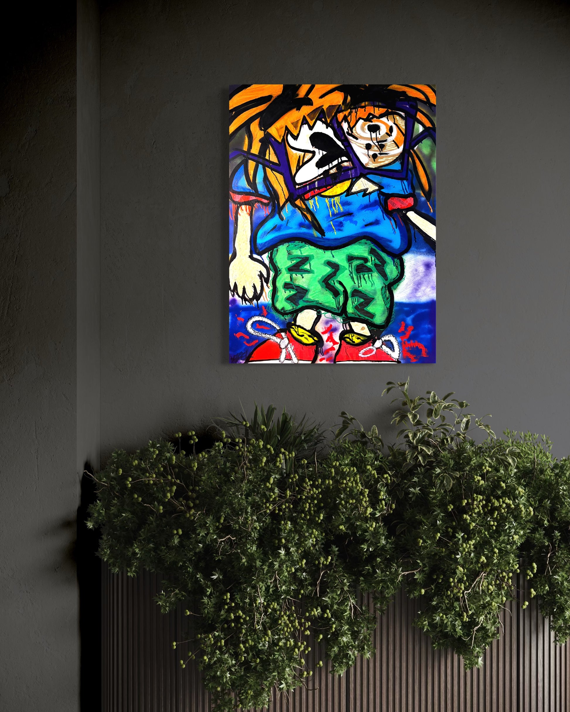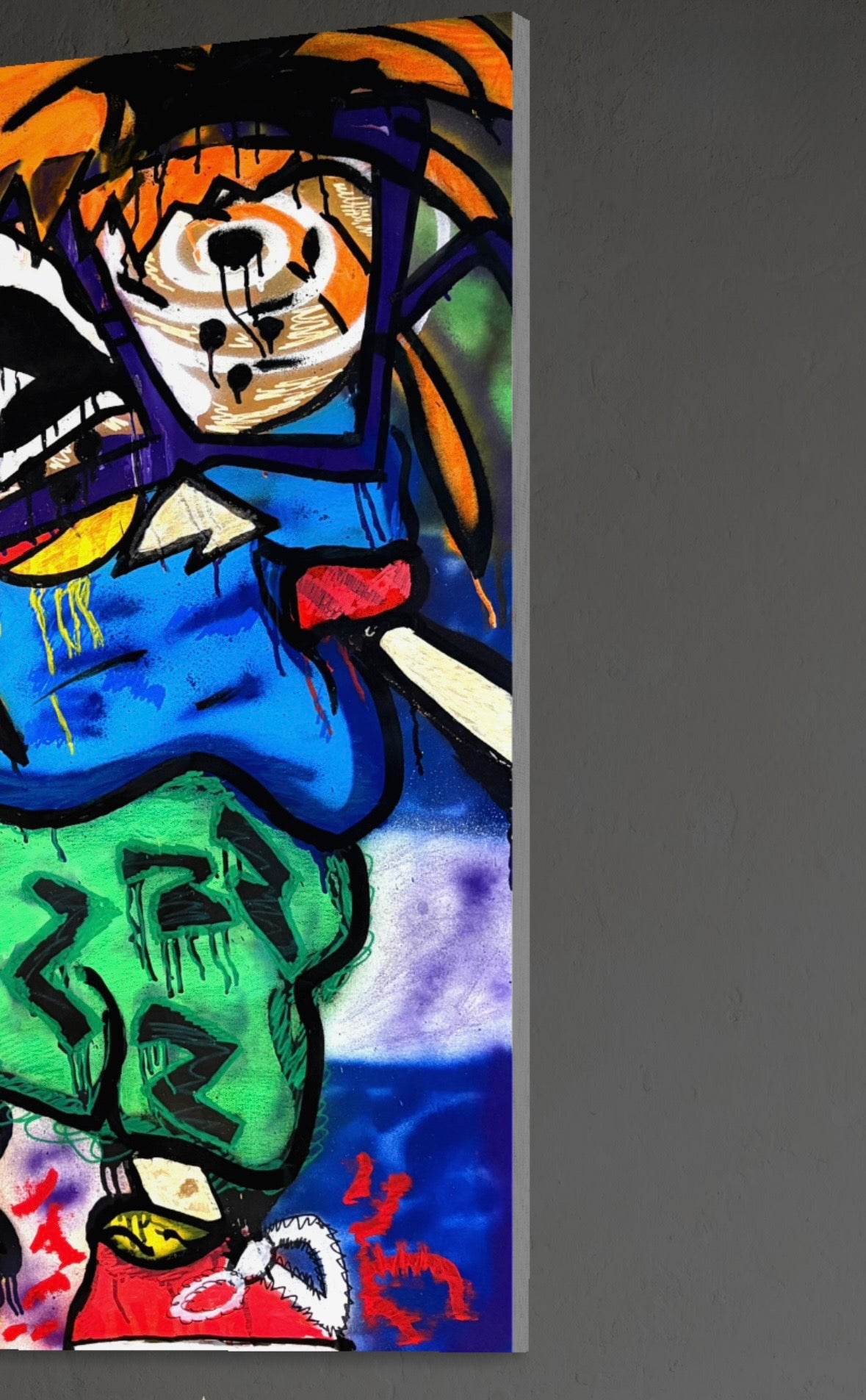 - Acrylic spray-paint, Posca paint Markers & Crayons on Stretched canvas